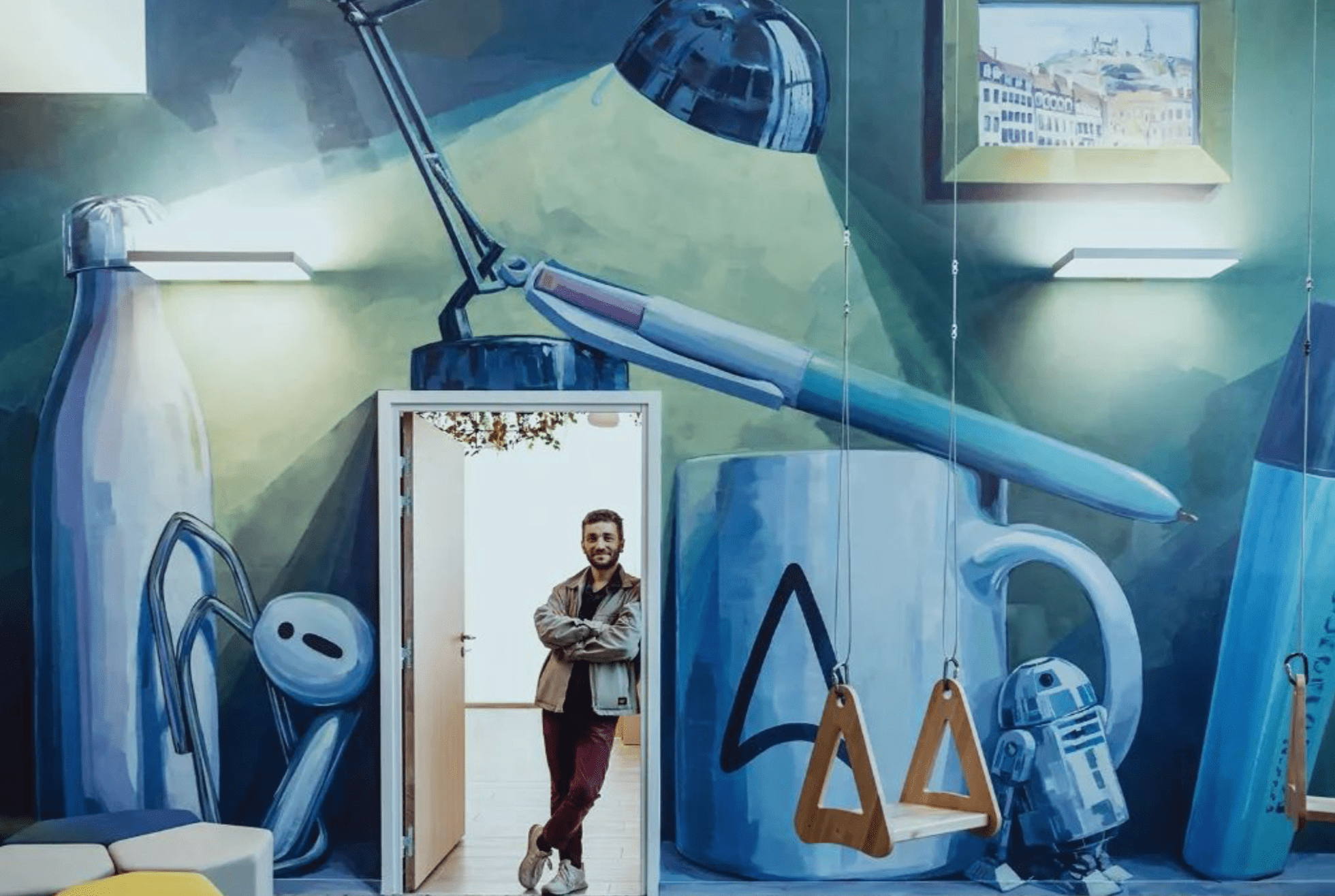 Il jongle entre la création de petits formats et un travail mural in situ d’une tout autre envergure. Il n’hésite pas à faire parler des objets pourtant inertes dans ses natures mortes, à transcrire des ambiances dans ses paysages et à rapporter des sentiments dans ses portraits.